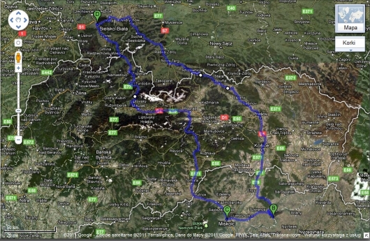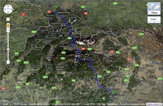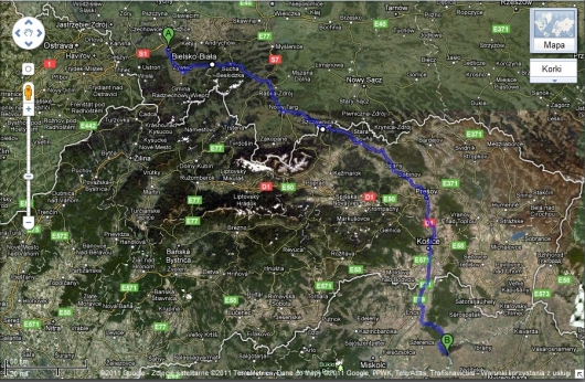 Bielsko-Biała – Sucha Bezkidzka - Nowy Targ - Niedzica - Stara Lubovnia - Presov - Koszyce - Tokaj.
