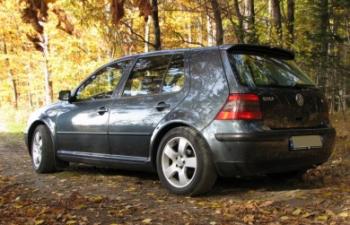 Golfik 1.6 8V 100KM, rocznik 1999, krajowy więc poza climatronikiem wyposażenie miał marne. Kupiony od księdza, na 14" stalowych felgach, które przeznaczyłem od razu na zimówki, a na lato dostał 16" ENZO. Bez specjalnych modyfikacji, jedynie wygłuszone wnętrze z bagażnikiem, do tego całkiem porządne audio, żeby nie było mnie słychać na zewnątrz jak podkręcę radio...